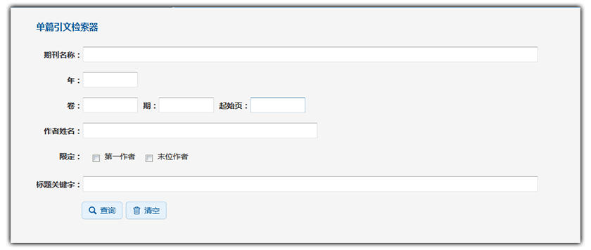 当您已知一些文献书目信息(比如杂志名、卷、期、页码、作者名等)想要检索某一篇文献时,可以采用单篇引文检索器进行检索